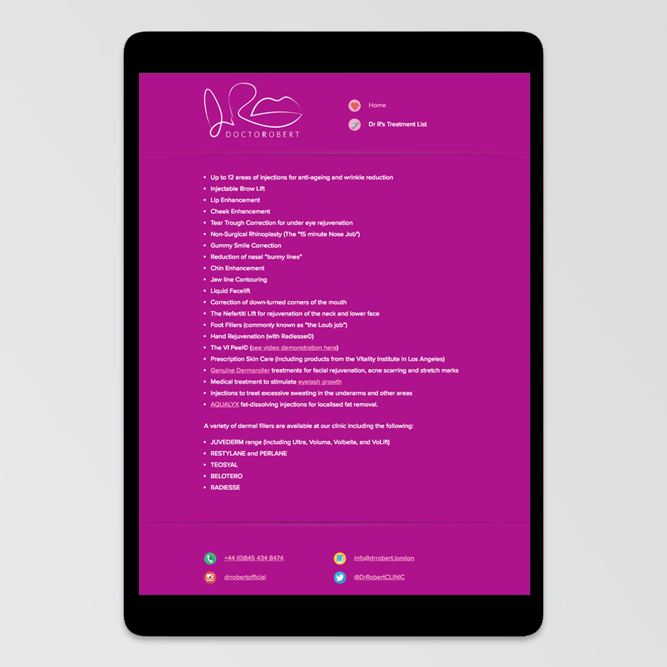 Promote non-surgical, cosmetic specialist Dr Robert to his glamorous, celebrity clients.
